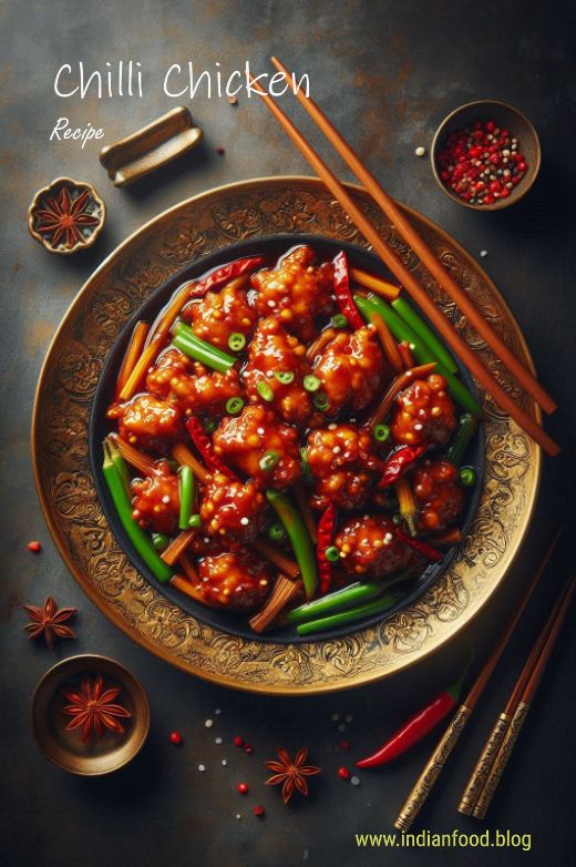 Chicken Chilli is a fusion dish that combines Indian spices with Chinese-style cooking techniques. The dish typically features batter-fried chicken pieces tossed in a spicy, tangy sauce with onions, capsicum, garlic, and soy sauce.