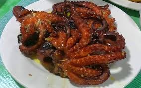 Stir-fried octopus with chili and garlic is a common seafood specialty.